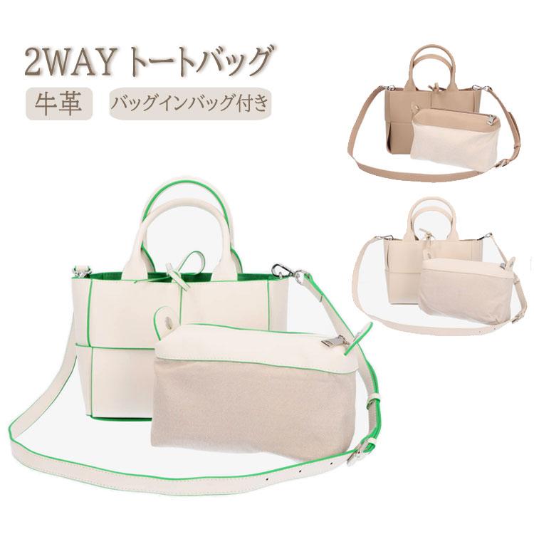 牛革 本革 2WAY トートバッグ ショルダーバッグ メッシュ 網目 BAG 手提げ 斜め掛け バッグインバッグ ポーチ付き レディース