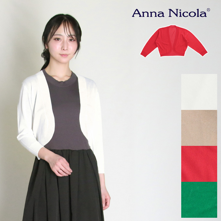 ニット ショート ボレロ カーディガン レディース 無地 Anna Nicola アンナニコラ BC-701303N3