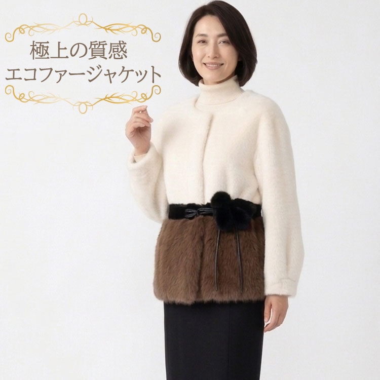 エコファー ジャケット ノーカラー 襟なし オフホワイト バイカラー レディース ギフト プレゼント¥22,800(税込)