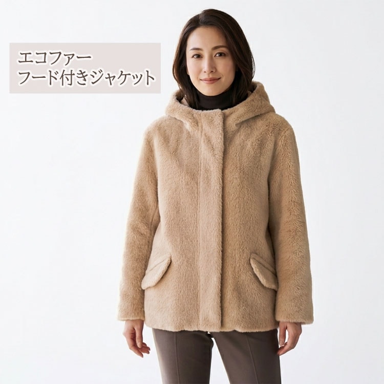 エコファー ジャケット フード付き ベージュ Wファスナー レディース ギフト 送料無料 プレゼント¥16,800(税込)