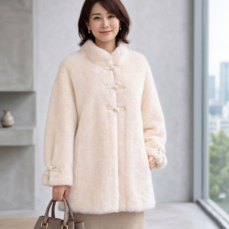 エコファー ジャケット コート チャイナ風 オフホワイト レディース ギフト 送料無料 プレゼント¥18,000(税込)