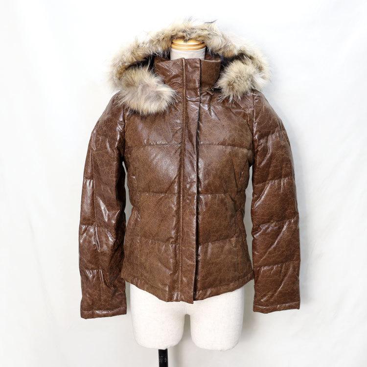 ディアレザー ダウンジャケット フード取り外し可能 ブラウン 送料無料