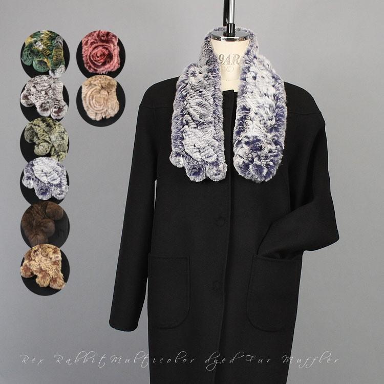 レッキスラビット マルチカラー ファー マフラー 多色染め ぼんぼり・コサージュ