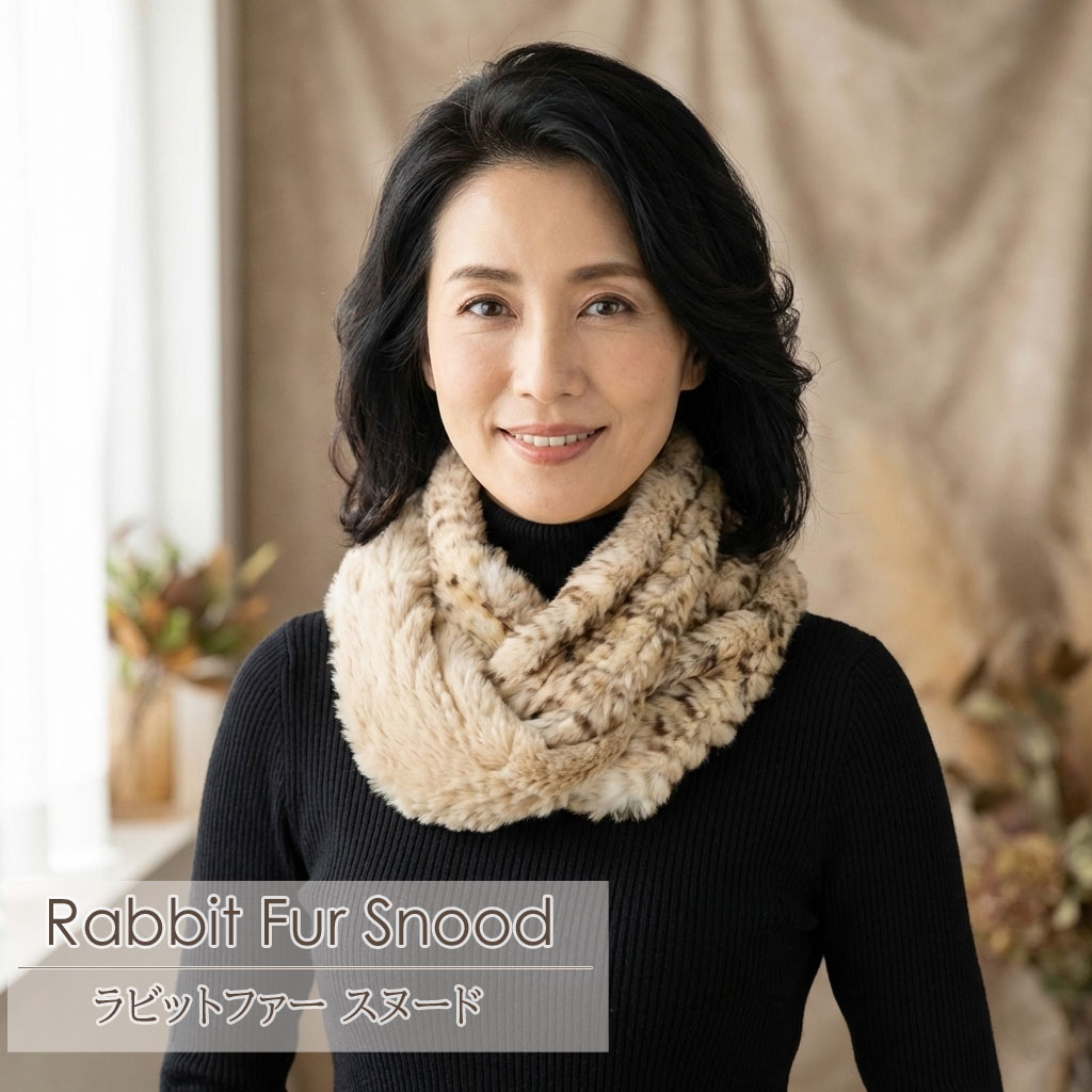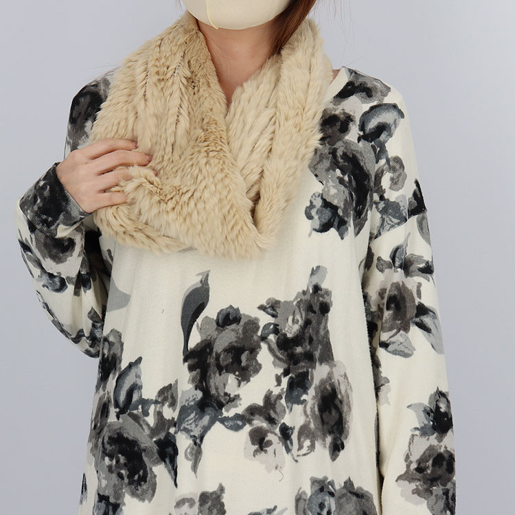 ラビット ファー スヌード アニマル柄 レーパード ベージュ ギフト プレゼント¥26,000(税込)