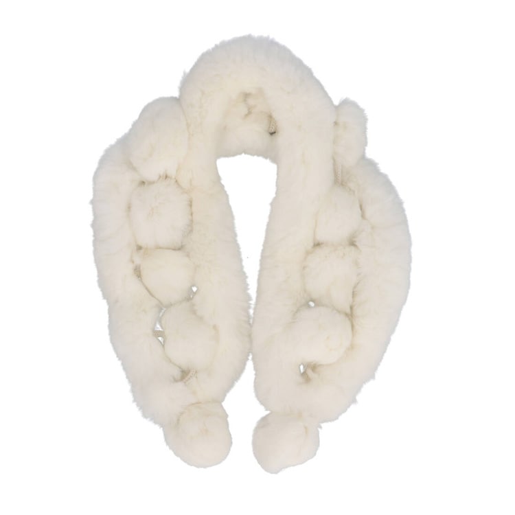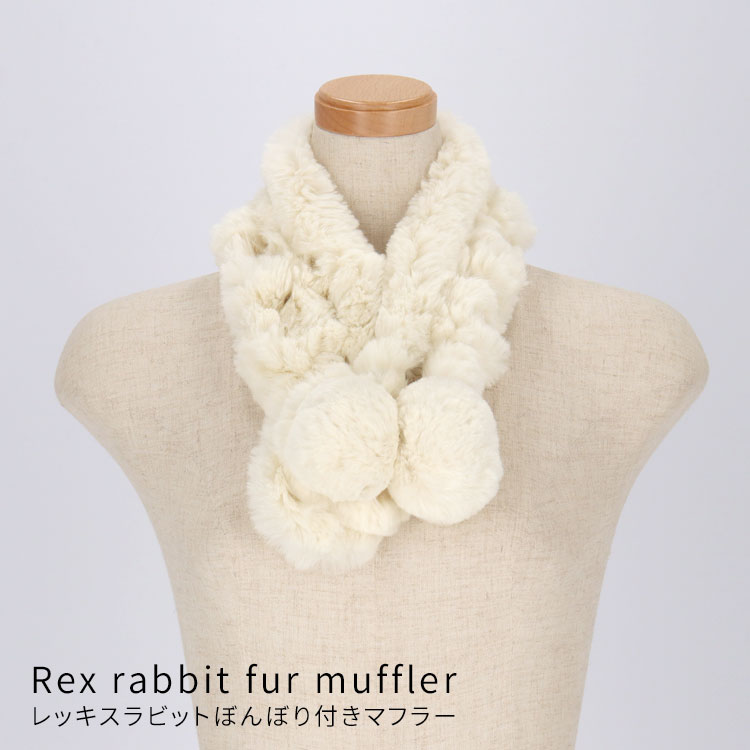レッキス ラビット ファー マフラー ネックウォーマー ぼんぼり オフホワイト リング レディース ギフト プレゼント