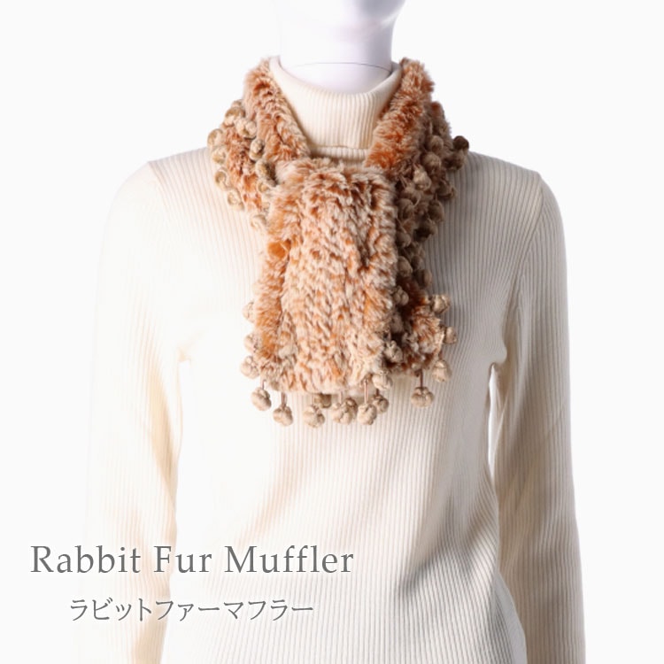 【セール】 マフラー ラビット フォックス ファー ぼんぼり ブラック ブラウン