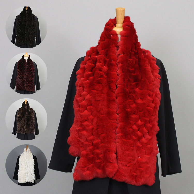 訳あり マフラー ラビット ファー 編み込み ニッティング クリップ付 レディース ギフト プレゼント