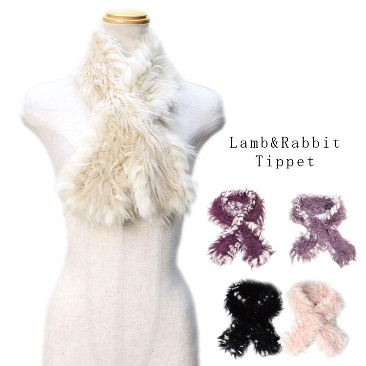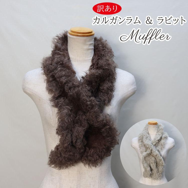 訳あり カルガンラム ラビット ファー コンビ マフラー 編み込み ティペット レディース