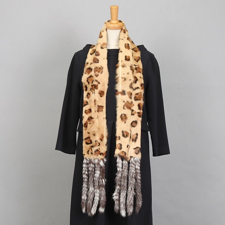 キッドラム ファー マフラー アニマルプリント ラビットフリンジ