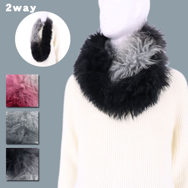 ラム ファー Wフェイス グラデーション マフラー スヌード
