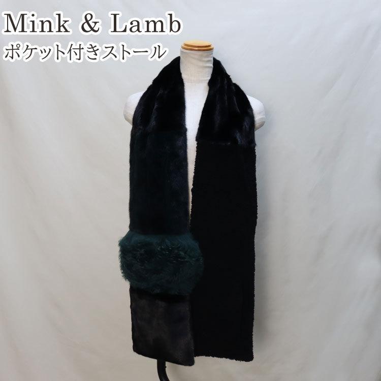 マフラー ストール レディース ミンク ラム ファー ポケット付 ブラック