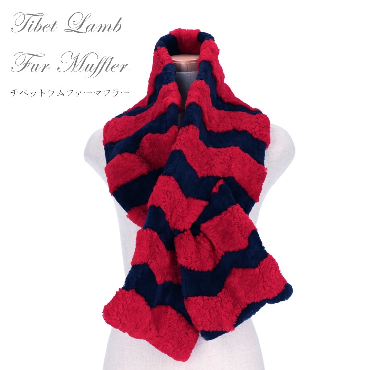 ラムファー マフラー もこもこ バイカラー ダブルカラー ストール レッド ネイビー ボリューム ふわふわ ロングマフラー