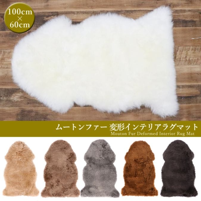 ムートン ファー 全6色 切りっぱなし ラグ マット カーペット 絨毯 敷物 インテリア ナチュラル オフホワイト ベージュ ブラウン グレー 変形 レディース メンズ ギフト プレゼント