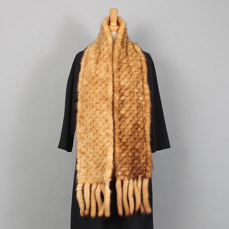 ミンク ファー ニッティング ロング マフラー ストール 太めフリンジ付 プレゼント