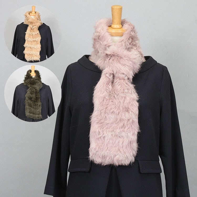 ラム ファー マフラー 日本製 クリップ ふわふわ もこもこ 付け襟 2way