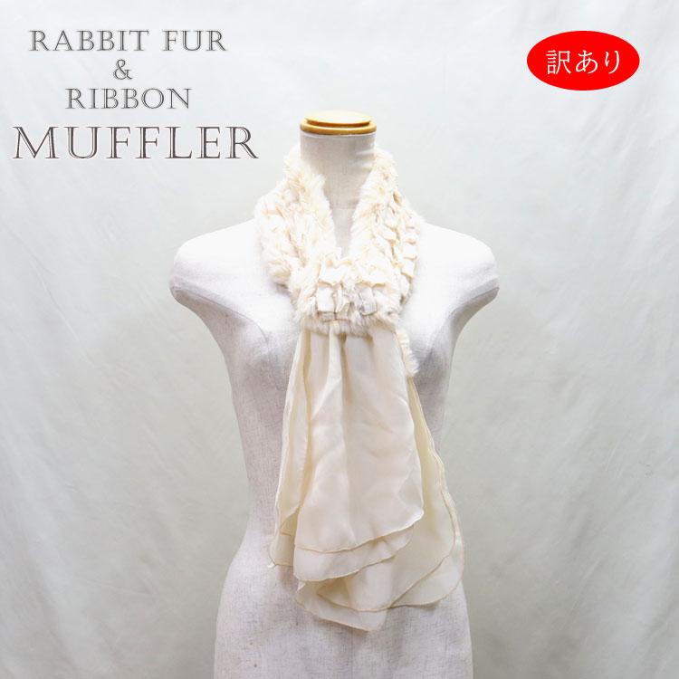 訳あり レディース マフラー ラビット ファー シフォン リボン ベージュ