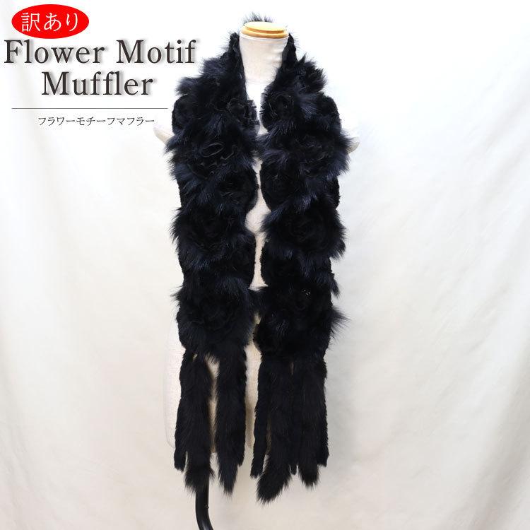訳あり マフラー レディース ファー フォックス ・ レッキスラビット フラワーモチーフ ブラック