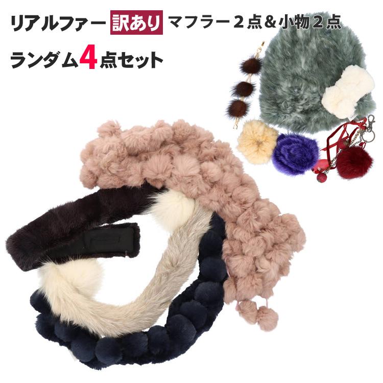 ファーマフラー2点 ファー小物2点 福袋 訳あり 4点セット アウトレット ファー 詰め合わせ セット 手芸 パーツ