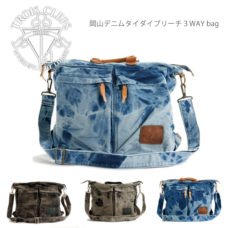 Trois Clefs トワクレ 岡山デニム タイダイブリーチ3WAY bag トートバッグ リュックサック 栃木レザー ショルダーバッグ バッグ 本革 牛革 TC1501