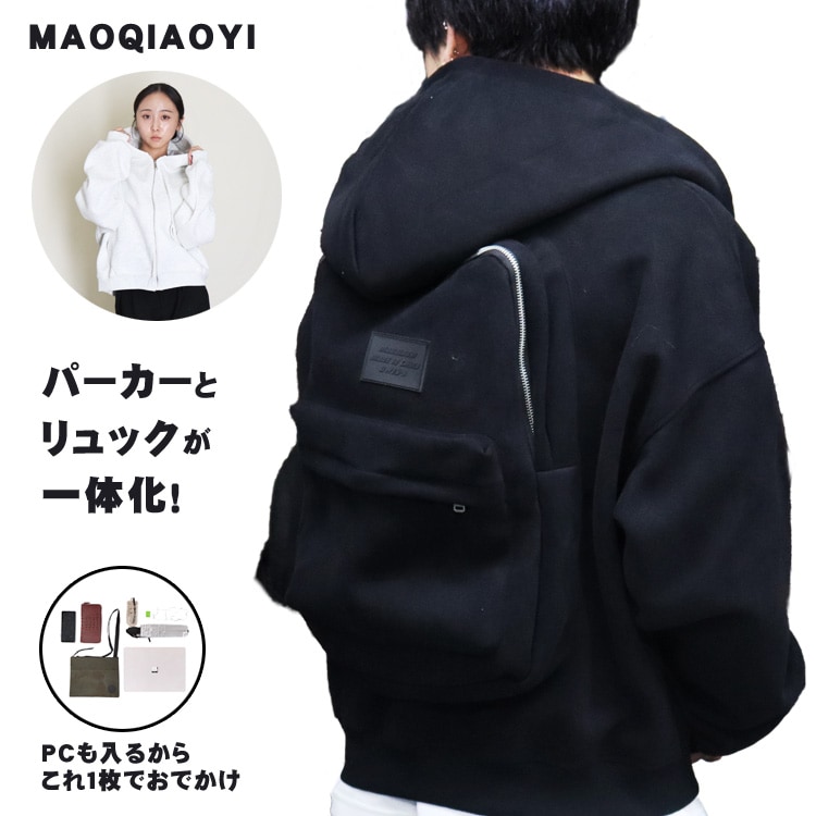 パーカー リュック フード 付き 新感覚 ホワイト ブラック メンズ オーバーサイズ ドロップショルダー Mサイズ