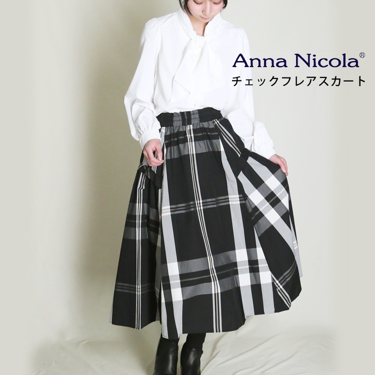 ロングスカート チェック柄 フレアスカート Anna Nicola アンナニコラ LV-705012N7 ブラック モノトーン レディース