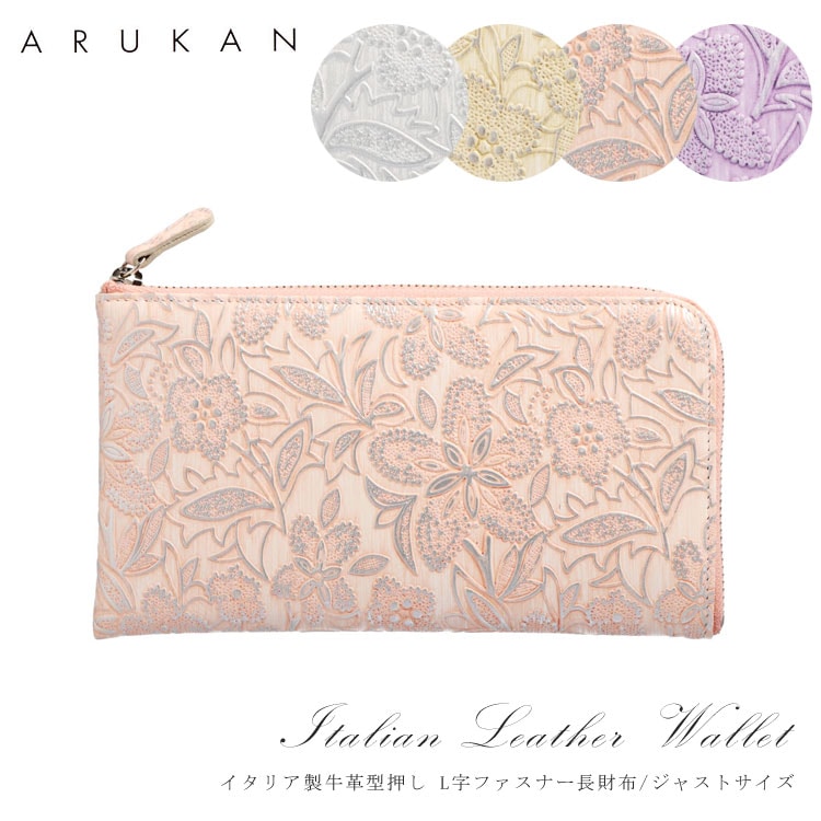 クレア イタリア製 牛革 花柄 日本製 長財布 L字ファスナー ジャストサイズ