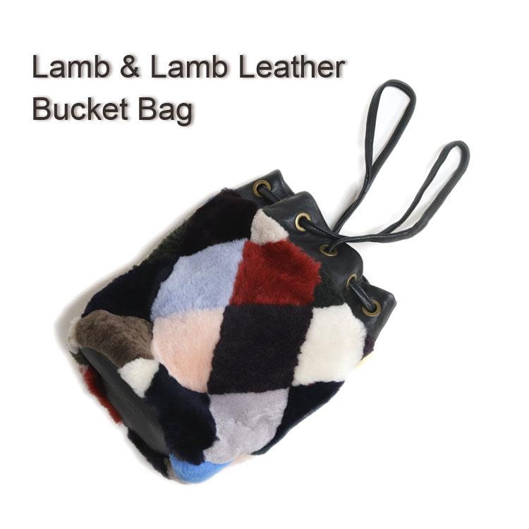 ラムファー ラムレザー バケットバッグ 手提げバッグ バケツ トートバッグ マルチカラー レディース