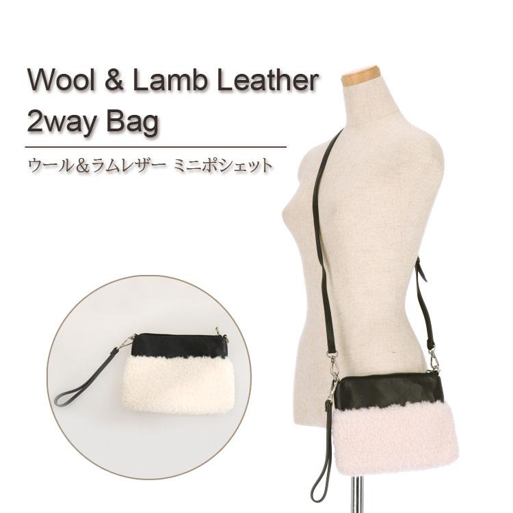 2WAYバッグ ポシェット ポーチ ウール ラムレザー ミニバッグ リアルファー 斜め掛け レディース