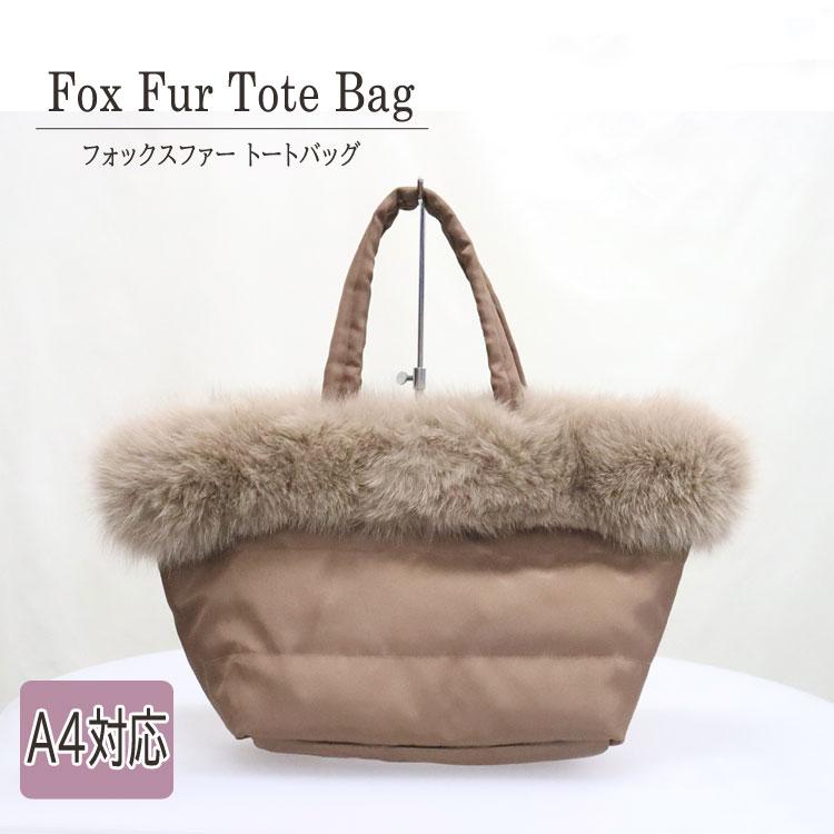 ファーバッグ フォックス トートバッグ 通勤バッグ ポリエステル モカ リアルファー 毛皮 手提げ