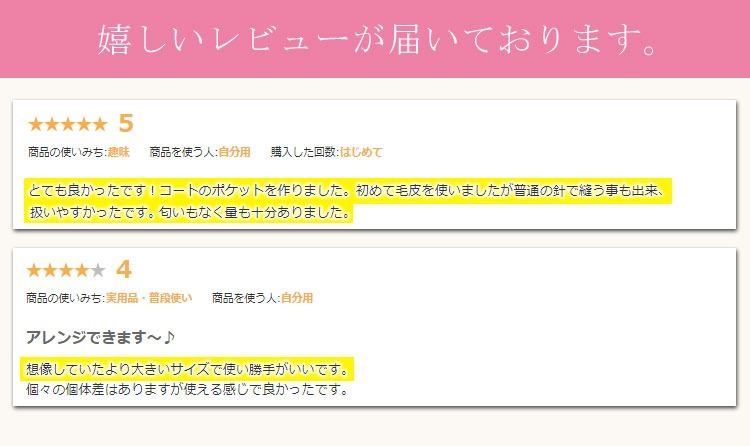 毛皮は可愛いしけど使いにくいかも…と思っている方に朗報です! ほつれず、家庭用のミシンで簡単縫えるので、フェルト感覚でお使いいただけます。 |