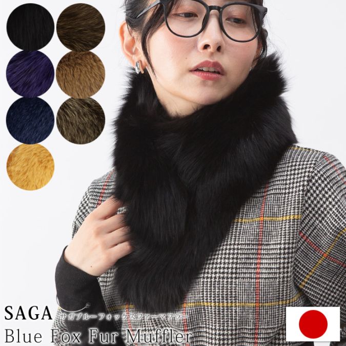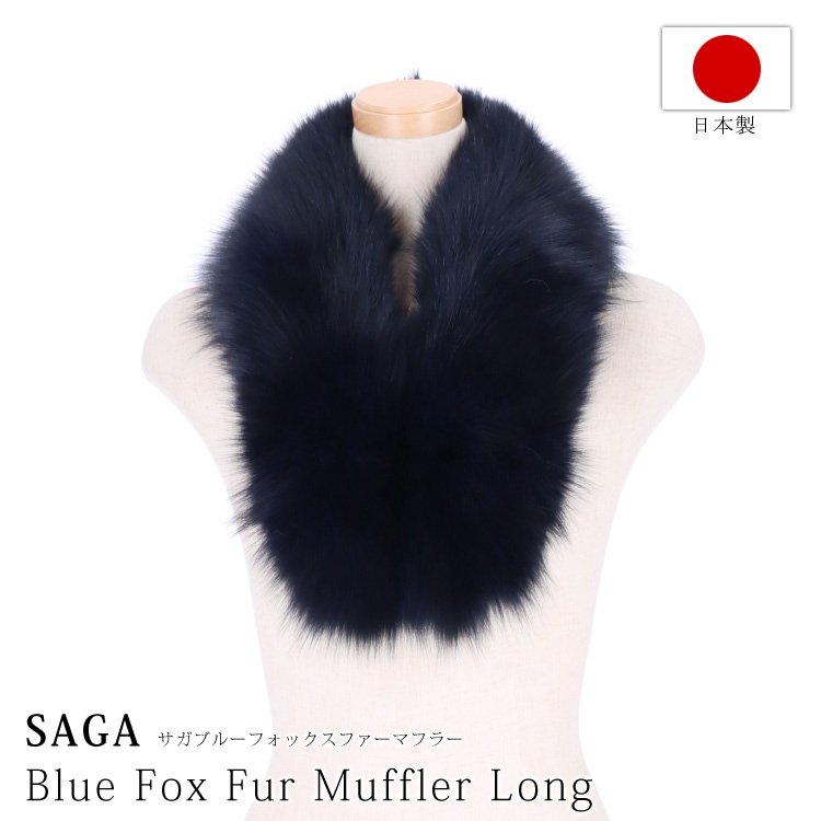 日本製 フォックス ファー マフラー SAGA サガ ネイビー ロング