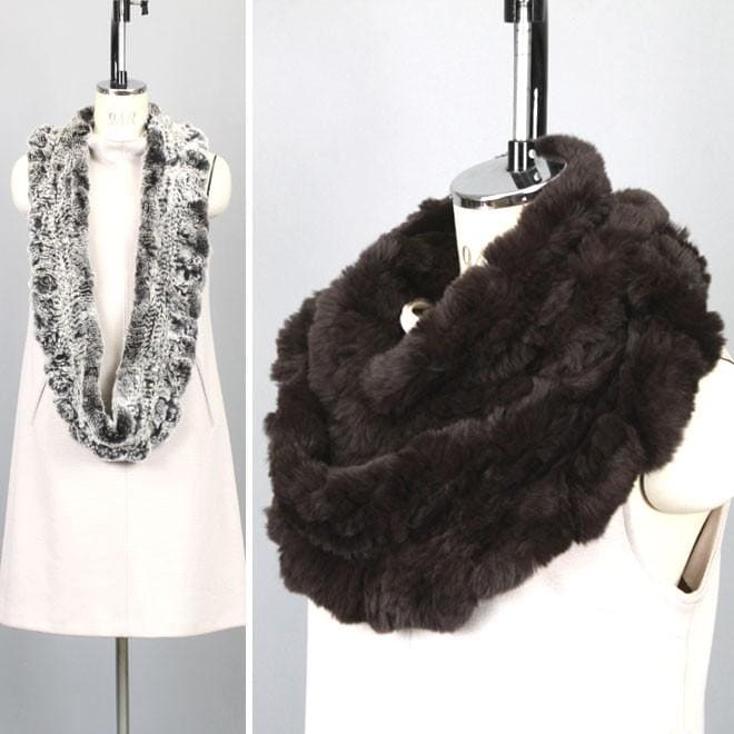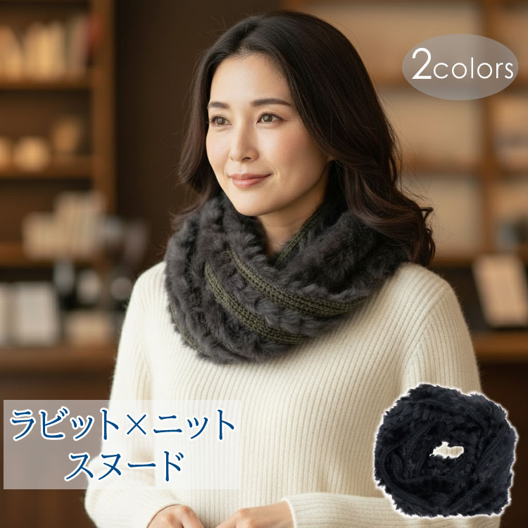 ラビット ファー ニット スヌード アクリルニット ロング マフラー ネックウォーマー