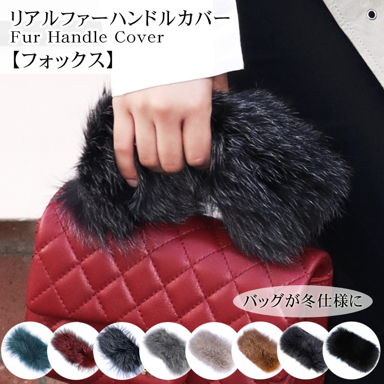 バッグ ファー ハンドル カバー フォックス 持ち手 モカ