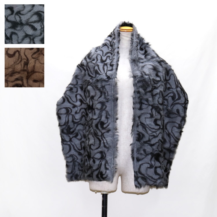 チキャンラム 大判 ファー ストール 送料無料 レディース ギフト プレゼント 波柄 全2色 ブラウン グレー