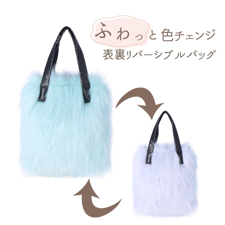 エコファー トートバッグ 縦型 フェイクファー 手提げ ブルー グレー リバーシブル レディース ギフト プレゼント¥3,800(税込)