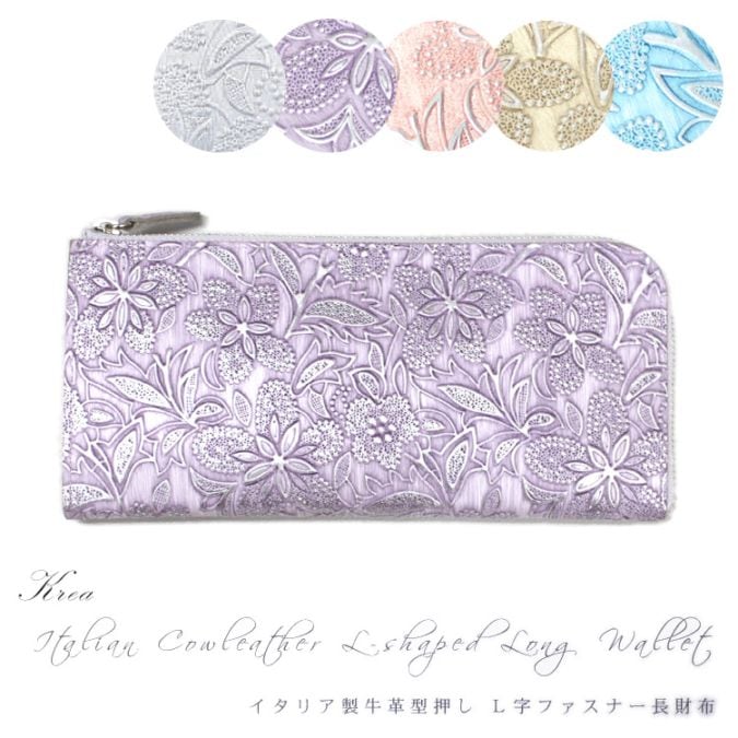 クレア イタリア製 牛革 花柄 L字ファスナー 長財布 送料無料 1416-660