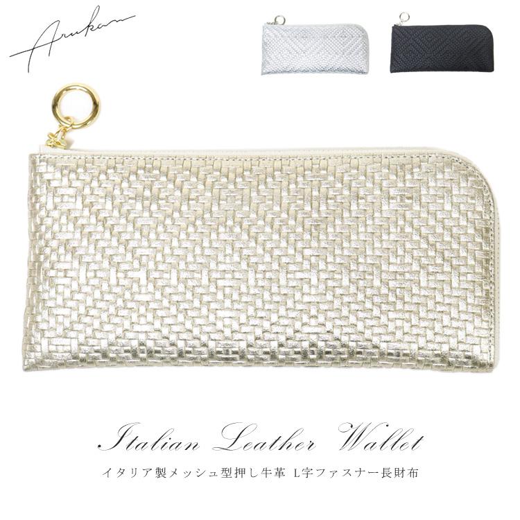 本革 長財布 型押し メッシュ イタリア製牛革 財布 L字ファスナー レディース アルカン パネロ 1414-708