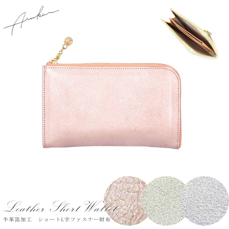 Arukan アルカン Neutral Gray Nippon 本革 財布 イタリア製牛革 エンボス ショート L字ファスナー サイフ デイジー ひな菊 メタリック NP061