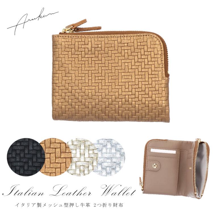 本革 財布 型押し メッシュ イタリア製牛革 ショート L字ファスナー レディース アルカン パネロ 1412-709