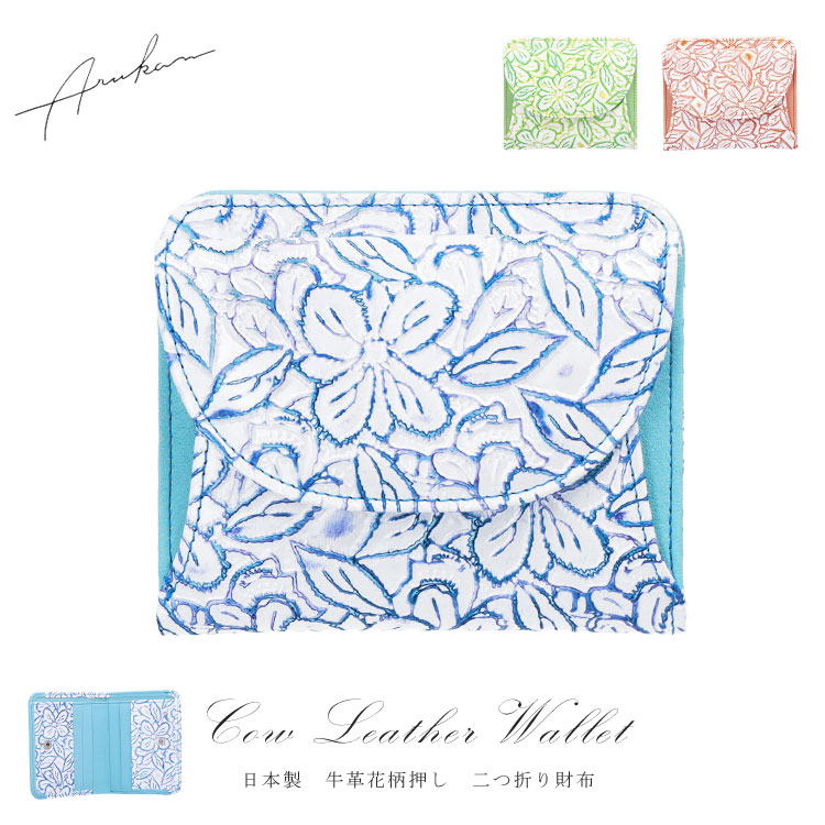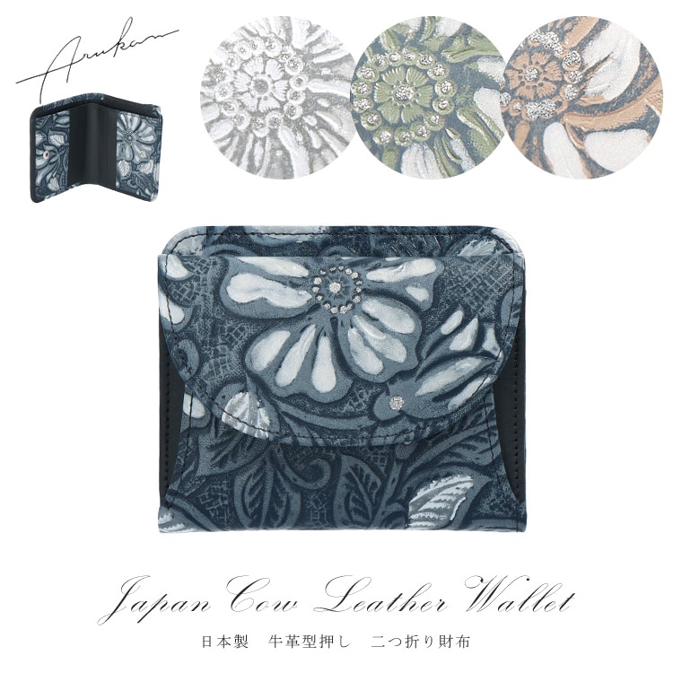 財布 日本製 本革 花柄 型押し 手塗り 二つ折り財布 ペタリー