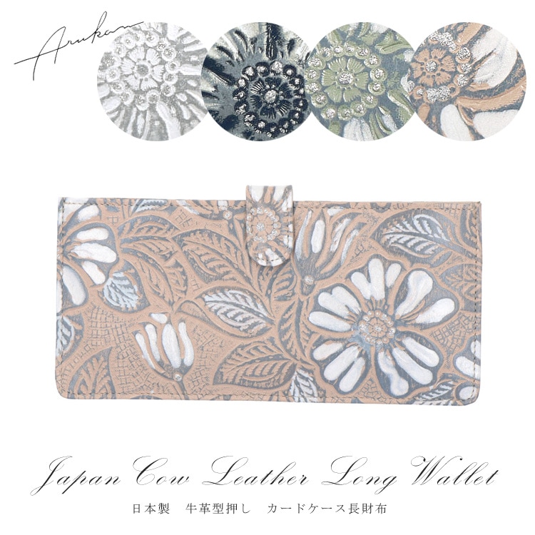 日本製 本革 手染め 型押し 財布 カードケース 長財布 アニス