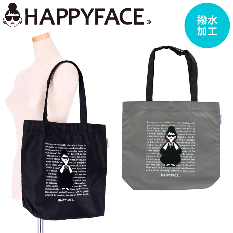 HAPPY FACE EMMA トートバッグ 英字背景 相良刺繍 全身 サングラス LADY 撥水加工 軽量 トート バッグ