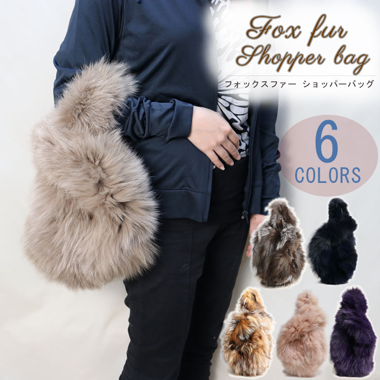 トートバッグ ファーバッグ ショッパーバッグ フォックスファー リアルファー ピンク ブルー レディース 送料無料 ギフト プレゼント