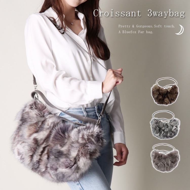 ブルーフォックス ファー クロワッサンバッグ 3wayバッグ ショルダーバッグ 三日月型