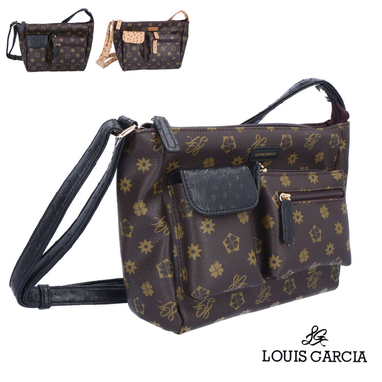 ルイ・ガルシア ショルダーバッグ 4357 オーストリッチ風 型押し 斜め掛け バッグ ブラック ベージュ ルイガルシア LOUIS GARCIA