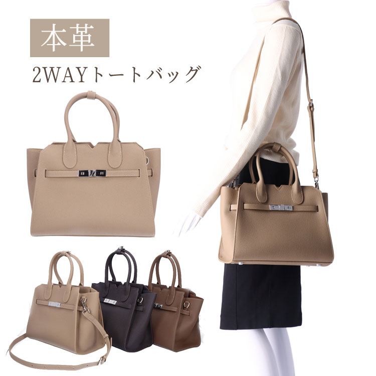 【通販特別価格】牛革 トートバッグ 2WAYバッグ ショルダーバッグ ハンドバッグ ベージュ ダークブラウン レディース ギフト プレゼント