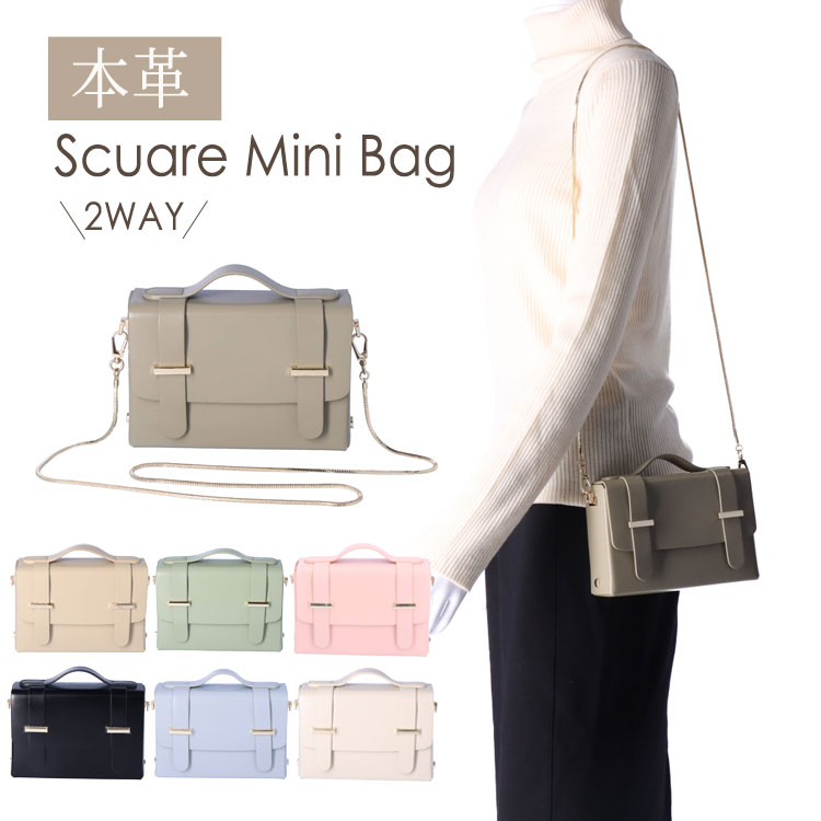 レザー 2way ショルダーバッグ ミニバッグ 本革 コンパクト シンプル 無地 オシャレ 牛革 鞄 ベルトデザイン 送料無料