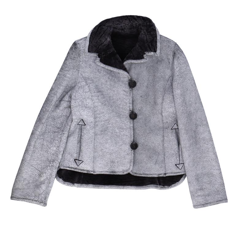 ラム Wフェイス ファー ジャケット 2トーン ホワイト & グレー