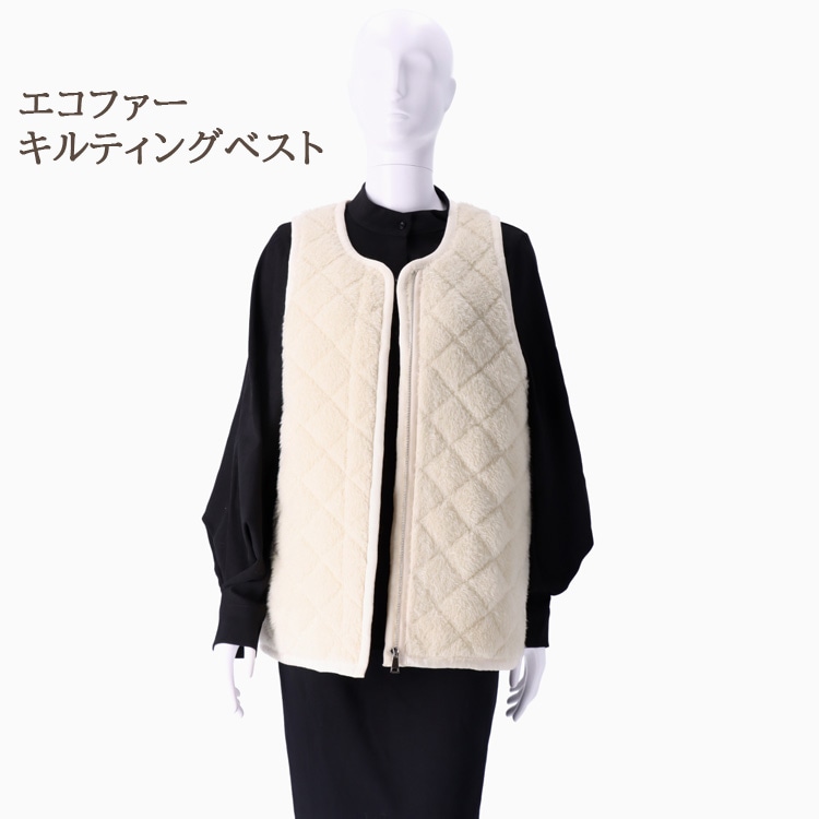 エコファー フェイクファー ベスト ジレ キルティング ファスナー オフホワイト レディース¥19,000(税込)
