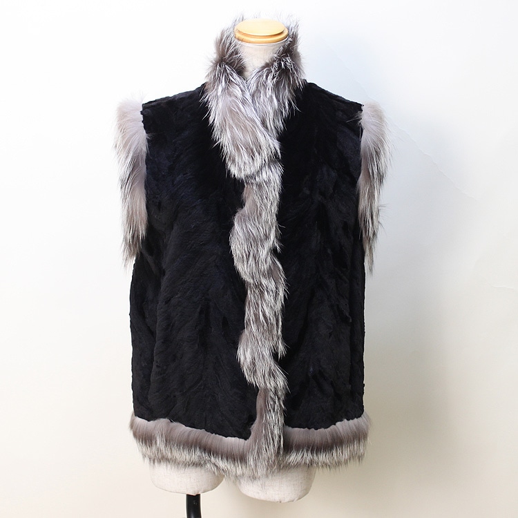 ミンク シルバーフォックス ファー ベスト ブラック リバーシブル